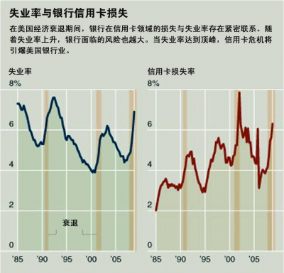 隨著美國失業率飆升至8.9%達53.9萬人時,許多信用卡持卡人陷入財政困境,無力償還欠款。更多的失業意味著更多的銀行損失。專家預測,很快會有上百萬美國人無力償還信用卡債務,對發卡銀行來說,這是持卡人給他們挖的一個“新坑”,信用卡損失正成為美國銀行業面臨的新挑戰。