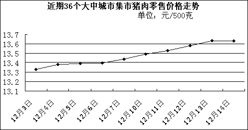 中新網12月18日電 國家發改委網站消息稱,據國家發展改革委價格監測中心監測,上周(12.10-12.14,下同)全國36個大中城市集市豬肉(精瘦肉)平均零售價格每500克為13.57元,比前一周(12.3-12.7,下同)上漲1.34%。