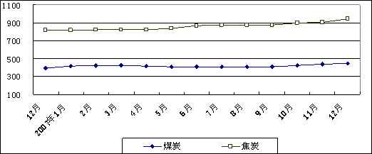圖2-1:主產(chǎn)省煤炭和焦炭價格(單位:元/噸)