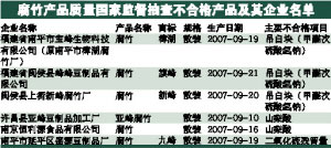 國家質(zhì)檢總局日前對50家企業(yè)生產(chǎn)的50種腐竹產(chǎn)品進(jìn)行監(jiān)督抽查,產(chǎn)品實(shí)物質(zhì)量抽樣合格率為96.1%,發(fā)現(xiàn)有3款腐竹違規(guī)添加禁用的“吊白塊”,另外還有兩款腐竹使用禁用的防腐劑山梨酸。食用含吊白塊的食品會(huì)引起過敏、腸道刺激等不良反應(yīng),嚴(yán)重者可產(chǎn)生中毒,令腎臟、肝臟受損。