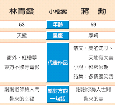 為了這場(chǎng)由紅樓夢(mèng)而起的師生對(duì)談,林青霞從香港飛來,和蔣老師回到以前上課談紅樓夢(mèng)的地方,但當(dāng)年同窗有人已不在。舊地開講,老師還是蔣勛,學(xué)生只有林青霞一人。