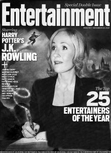 《娛樂周刊》按照一個班級里可能會出現的5種人來為娛樂界的名人定位,他們分別是天賦異稟、班中小丑、風云達人、八卦之星和致詞代表。今年推出《哈利.波特》完結篇的羅琳沒被歸于其中任何一類,被選為“年度娛樂人物”。雜志認為,羅琳完成了不可能完成的任務,在電玩和在線游戲充斥、一切講究短小輕薄的年代,她施展魔法,讓數億大小孩抱著厚厚的印刷書籍愛不釋手,雜志如此評價說:“《哈利.波特》已賣出了4億冊,并且拍成了有史以來最賺錢的電影系列片,羅琳讓人們圍著她老式的印刷大書團團轉,好像這就是地球上最火熱的新娛樂手段似的。”