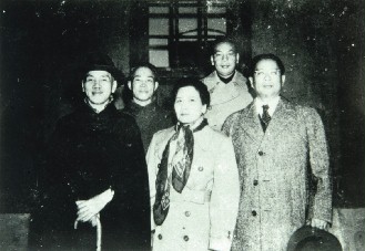 1945年5月,蔣介石(左)、宋美齡(中)、蔣經國(右二)、蔣緯國(左二)和宋子文在重慶合影。