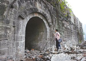 昨日下午,三峽博物館專家對這段疑似古城墻進行了勘查。副研究員、重慶古代文物專家馮慶豪認為,從肉眼觀察,城墻外表風化程度不夠,條石的堆砌方式也不符合古城墻的修建規(guī)則。不過,專家們在一個城門洞內(nèi)發(fā)現(xiàn)疑點:洞內(nèi)石塊風化程度竟比飽經(jīng)風雨的外墻更厲害,且石塊用灰漿堆砌,而非近現(xiàn)代的水泥。