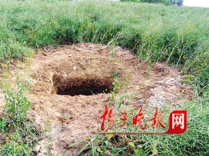 在村民的指點下,記者看到每塊田里都有數(shù)個大坑痕跡,四周仍然散落著大大小小的磚塊,磚塊上面還有菱形的紋飾。村民王道根家中的一畝半田里被挖出了4個大坑。王道根對記者說,他家的油菜田在春節(jié)時就被人挖了個坑,有人說是外地人來“尋寶”的。那時的田地上很空曠,沒有遮擋,來人沒敢大肆挖掘。油菜長高后,幾個人躲在里面根本發(fā)現(xiàn)不了,所以這伙人的膽子大了,竟把油菜田當(dāng)成了藏身的青紗帳。王道根的妻子對記者說,她家的油菜被踩得一塌糊涂,少說也有3分地。
