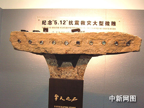 中新網杭州11月3日電(記者 龔讀法 實習生 王磊)2008年11月3日,紀念“5•12”抗震救災大型群體微雕作品《擎天之石》,在浙江省杭州市天石微雕藝術館創作完成。據了解,這是中國微雕藝術界首次合作,具有里程碑式的意義。海內外20位微雕藝術家多件微雕精品鑲嵌在一塊來自地震災區的川石上,并將在展出后贈予四川國家地震遺址博物館收藏。