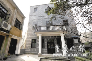 記者昨日看到,公館保護完好。樓房青磚砌墻,爬滿手指粗的藤蔓。大門采用羅馬柱,兩只石墩已經風化。屋內上朱紅油漆的柏木鋪就地板和樓梯,欄桿上刻飾精細,每層樓梯口和單個房間均設拱形木門。大門前是一方小院,青石板地面長著一株直徑約1米的黃葛樹。