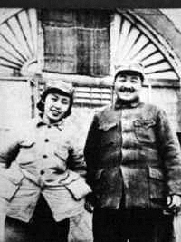 1938年雙十節(jié),由王明的夫人孟慶樹介紹(一說陳賡介紹),40歲的八路軍副總司令彭德懷,在延安娶了北師大著名的浦氏三姐妹(潔修、熙修、安修)中的小妹、20歲的嘉定姑娘浦安修(1918-1991),婚后無子女,但共度戰(zhàn)爭歲月,感情甚篤。廬山會議后,浦安修幾經(jīng)斟酌,終與彭德懷在60年代脫離關(guān)系。當時老彭切開一個大梨,二人各吃了一半。