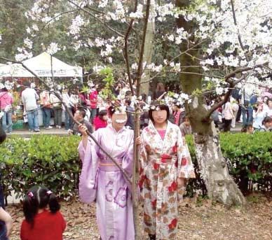 武大校園的櫻花又開了。21日,大量的人流涌入武大賞花,附近交通一度擁堵嚴(yán)重。一對(duì)操武漢口音的母女身穿和服在櫻花樹下照相,招致數(shù)名學(xué)子的轟趕,很多圍觀市民也表示憤慨。率先聲討的小伙子,據(jù)說是武漢大學(xué)的大二學(xué)生。聲討聲中,這對(duì)母女面露窘態(tài),匆忙逃離。(詳見本報(bào)3月23日A15版)