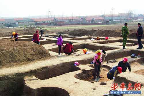 從3月26日開始,經(jīng)國家文物局批準(zhǔn),山東大學(xué)考古實習(xí)隊與青島市文物保護考古研究所合作,對青島市即墨北阡文化遺址進行了第二次考古鉆探和發(fā)掘。記者 4月6日采訪了解到,在2007年第一次發(fā)掘的基礎(chǔ)上,此次又新發(fā)掘了四座周代墓葬,發(fā)現(xiàn)了成套的陶器及殉狗等,同時還發(fā)現(xiàn)了大汶口文化早期的二次合葬墓及“紅燒土”房屋遺址等。據(jù)介紹,本次發(fā)掘活動將持續(xù)到 5月底,力爭通過發(fā)掘和研究追溯和還原6000多年前先民們的生活狀態(tài)。