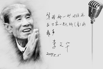 僅僅4天前,李文華通過前去探病的中國曲藝家協會的唐杰忠、蔡興林、常祥霖、陳連生4位朋友,將一幅病榻上的照片和兩張題字送給關心他的廣大觀眾。