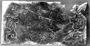 也有學者認為三星堆的“玉石文字”受甲骨文的影響,陳保亞認為這種說法會遇到困難,因為三星堆文化的“玉石文字”還處于圖畫和文字并存階段,在形態上比甲骨文要早,或者說要原始。