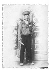 閱兵結束后,張百川跟同學們紛紛跑到照相館拍照留念。大家都穿著閱兵時的裝束:為閱兵專門配發的綠色飛行員帽子、上衣,白色襯衣,腳上穿著咖啡色的仿毛皮鞋。張百川介紹說,原本發的是普通的軍用膠鞋,為了踢正步時鏗鏘有力,特意發放了這樣的皮鞋,據說是抗日時繳獲日軍的。