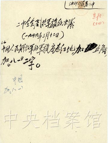 1948年2月,中共中央發(fā)出通知,向各中央局、中央分局、各軍區(qū)、各野戰(zhàn)軍前委征求中國(guó)人民解放軍軍旗、軍徽的具體意見(jiàn)。