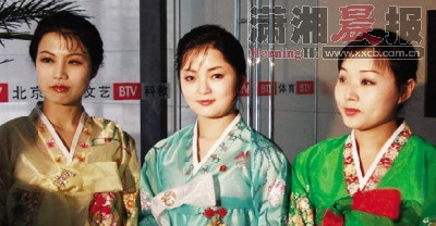 昨天下午,北京電視臺排練廳,朝鮮《紅樓夢》劇組人員接受了采訪。圖為三位女主角,左起:林黛玉扮演者李正蘭、薛寶釵的扮演者崔錦珠、紫鵑的扮演者閔福心。圖/IC)