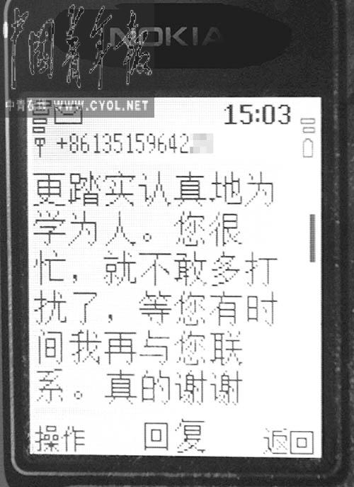 周澤告訴筆者,他在2005年就發現了此事,并給廈門大學發去了傳真進行維權。他還與周立華碩士階段的導師取得了聯系,被告知當時周立華正在攻讀博士學位,是節選了其碩士論文的部分內容單獨成文后給雜志社投的稿。導師還代他的學生向周澤求情,說這個學生很不容易。2005年6月 21日晚,周澤先后收到了周立華的兩條短信,就文章抄襲之事向他表示歉意。其中一條短信寫道:“周老師,真的對不起!謝謝您給了我改過上進的機會,也謝謝您給我上了深刻的一課!以后我會更踏實認真地為學為人。”但此后周立華再未與周澤聯系,周澤也暫時擱下了此事。