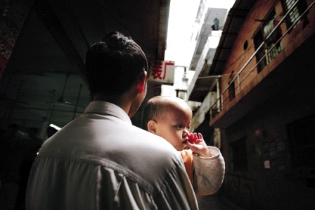 蘇屋村中間一棟六層民房的第四層有黃建軍的家,僅六七平方米的空間里,有房間有廁所有廚房。兒子的意外身亡,是對兩夫婦最大的打擊。9年來,他們幾乎把所有的心血都傾注在孩子身上,“希望他能做個城里人,讀好書,不要像我們一樣只能做粗活”。然而,黃建軍對現實的“殘酷”也有著清醒的認識,“其實我們拿不到戶口,不可能像城里人一樣享受各種福利,上公立學校的贊助費我們都交不起”。