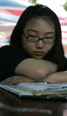 地震之前,學(xué)校的老師們安排了復(fù)習(xí)的方向、制定了進(jìn)度,高三同學(xué)剛進(jìn)行完第三次仿真模擬考試。“不知道考得怎么樣,還沒(méi)拿到分?jǐn)?shù)就地震了。”張亞秋告訴早報(bào)記者,幾天前綿竹中學(xué)曾召集高三學(xué)生復(fù)課,在帳篷下由老師帶著復(fù)習(xí),但三天前發(fā)生了一次較強(qiáng)余震,學(xué)校又停了課。張亞秋最大心愿就是能有老師帶領(lǐng)著復(fù)習(xí),她說(shuō)這樣復(fù)習(xí)的效率會(huì)更高一些。她也希望高考能推遲,“畢竟中間受了這么大波折”。(記者 龍毅 李萌)