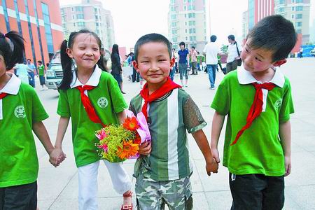 “好多家長都想請災區的孩子到家里做客!”六年級的婁娟老師說,家長們給她打電話、發短信,希望能給他們機會,讓孩子把來自災區的新同學帶回家,給他們家的溫暖……