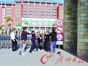 本報(bào)訊 (記者李立志)廣汕路華立學(xué)院的學(xué)生進(jìn)校門時(shí)被眾保安圍毆,這一幕卻被路過的學(xué)生用手機(jī)拍下。保安打人的帖子先是發(fā)到學(xué)校的校內(nèi)論壇上,但很快就刪除,發(fā)帖的同學(xué)很快接到輔導(dǎo)員的電話警告。昨日聯(lián)系采訪華立學(xué)院的辦公室及保安部,辦公室稱不清楚情況,保安部稱領(lǐng)導(dǎo)不在,記者發(fā)稿時(shí)還沒有接到任何消息。
