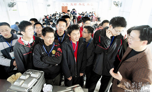 這些學生代表著中國中學生數(shù)學最高水平,他們將在武鋼三中進行為期18天的集訓和考試,最后6名勝出者將進入國家隊,代表中國參加今年7月在德國舉行的第50屆國際數(shù)學奧林匹克競賽。