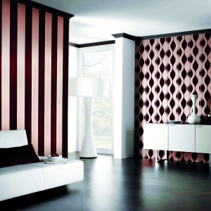 如今,不少設計師會將高檔材質與簡約風格相融合到家居設計之中,一方面采用最簡單、流暢的線條設計,另一方面在裝飾上使用高檔材質、浮雕結構或立體感十足的圖案。以瑞寶這套樣板間為例,這款壁紙表層為天鵝絨質感,不僅觸感不錯,而且富有層次感的花紋,很適合與白色或灰色色調的皮革沙發搭配。如果希望擁有一個較為華麗的家,也可以與一些比較經典的歐式家具搭配。不過,不要與顏色跳躍、花樣圖案繁復的家具搭配,這樣會使空間顯得雜亂無序。在配飾上,可以用一些比較活躍的色彩適當點綴,達到一種高貴有內涵的韻味,比如窗簾、抽象的裝飾畫、精致的瓷制花瓶等。如果將這款壁紙貼在客廳和書房的墻上,富有層次感的圖案增加了視覺沖擊,同時又能讓人情緒放松,給人無限的想象空間。