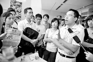 9月5日,80多名購房者在浙江省世界貿(mào)易中心舉行了抗議,浙江萬科南都房地產(chǎn)有限公司副總經(jīng)理饒永生第一次與萬科業(yè)主“面對面”,并承諾第二天上午公司總經(jīng)理傅明磊與業(yè)主懇談。照片和視頻傳到網(wǎng)絡(luò),網(wǎng)民反映不一,一部分人認(rèn)為房價回調(diào)是正常的,愿賭服輸;另一部分人則表示同情購房者。