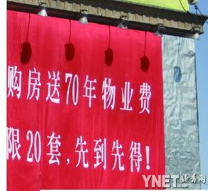“終身免物業(yè)費(fèi)”、“購(gòu)房送70年物業(yè)費(fèi)”,在今春一派樓市回暖的景象中,北京許多樓盤(pán)相繼推出新的促銷熱賣舉措。近日,京城多家房產(chǎn)網(wǎng)站上,都出現(xiàn)了部分樓盤(pán)購(gòu)房全免物業(yè)費(fèi)的消息,一時(shí)成為購(gòu)房者和業(yè)內(nèi)人士關(guān)注的話題。
