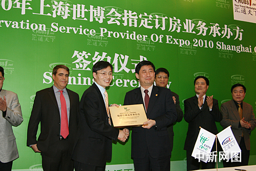 圖為上海世博會事務協調局與匯通天下共同舉行《中國2010年上海世博會訂房服務項目贊助商》簽約儀式。