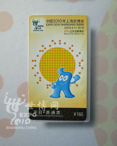 從今天公布的票樣上看,上海世博會門票寬度為98毫米,高度為54毫米,厚度為0.50毫米,票面圖案以上海世博會會徽、吉祥物“海寶”和主題為主,美觀大方、方便攜帶、易于快速查驗。世博會門票以不同的顏色和版式來區分票種,主要運用了黃、藍、紅、紫、綠等五種顏色,分別代表了平日票、指定日票、多次票、夜票和團隊票;橫版和豎版則分別代表優惠票和普通票,使購買者一目了然。同時門票采用了環保紙質材料,并采用了具有自主知識產權的芯片防偽技術。