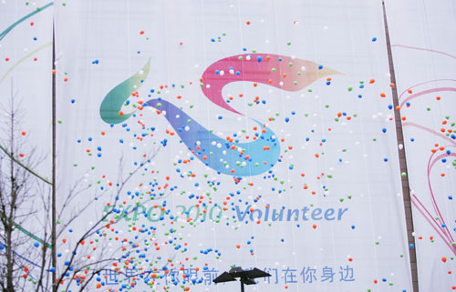 中國2010年上海世博會志愿者標志的主體由漢字“心”、英文字母“V”、嘴銜橄欖枝飛翔的和平鴿構成。與世博會會徽“世”異曲同工,在呈現中國文化個性的同時,表達了志愿者的用“心”和熱“心”!癡”是英文“Volunteer”的首字母,闡述了標志所代表的群體,賦予其清晰的含義;飛翔的和平鴿代表上海,也象征和平友愛,橄欖枝則寓意可持續發展和希望,傳承“城市,讓生活更美好”的世博會主題。彩虹般的色彩,迎風飄舞的彩帶,是上海熱情的召喚。