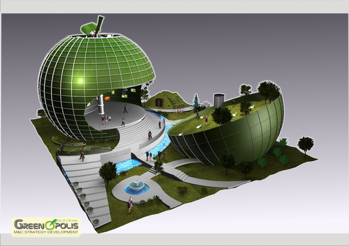 上海世博會羅馬尼亞館占地2000平方米,將以“綠色城市”為主題,展示城市中的歷史文化遺產(chǎn),展現(xiàn)羅馬尼亞人民致力于更美好生活的智慧。羅馬尼亞館的蘋果外形和標志文字“GREENOPOLIS”體現(xiàn)了健康生活方式的重要性、對可持續(xù)發(fā)展理念的關(guān)注以及針對現(xiàn)代社會普遍存在問題的以知識為本的解決方案。