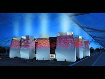 俄羅斯館占地6000平方米,是世博會最大的展館之一。它的外圍是12座不規則形狀的塔樓,聳立于草坪和水景之間,塑造出俄羅斯館傳統與現代相結合的外形。據V.P.Strashko介紹,“12”寓意著時間和生命的完整,塔樓紅、白、金三種顏色則分別象征著美麗、純潔和財富。此外,這些形狀不同的塔樓在功能上也各有分工,有的是餐廳,有的是俄羅斯城市風采展示廳,其他的則是辦公區、貴賓廳、禮品店……在塔樓邊,還有一個露天咖啡廳。其中,兩座俄羅斯區域塔樓在世博會期間每兩周將舉辦聯邦主體推介展示活動,向參觀者展示俄羅斯各聯邦區域的特色;在創新塔樓內,俄羅斯館將通過展示城市基礎設施方面的最新成就,如潮汐電站工程,以展現俄羅斯當代城市生活的整體圖景。