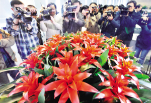 “中國紅”是鮮花港科技興市重大攻關(guān)項(xiàng)目的最新成果。這一鳳梨花新品色澤純正花型飽滿,葉片大花期長(zhǎng),環(huán)境適應(yīng)性強(qiáng),是較理想的室內(nèi)用花。(薛慧卿 孫中欽)