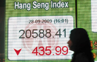 即月期指報20642點,跌296點,高水54點。國慶長假期前,A股有沽壓,上證大跌2.7%,拖累國指跑輸大市,國指收報11752.6點,跌303.8點。藍籌股除中電外全線下跌,中移動、國壽、港交所皆跌超過3%。跌幅最大的藍籌為聯(lián)通,全日跌5%。國指40多只成分股全數(shù)下跌,跌幅最大的為比亞迪,跌7.5%。內(nèi)房股是重災(zāi)區(qū),當(dāng)中以綠城跌幅最大,收市跌6%。