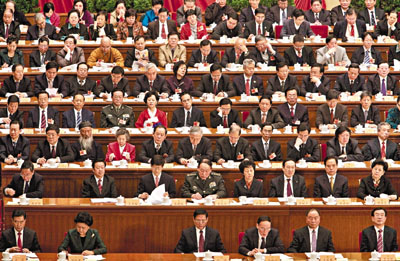 3日在主席臺就座的還有多名涉港澳臺事務(wù)高官,如港澳辦主任廖暉、全國政協(xié)港澳臺僑委員會副主任陳佐洱、海協(xié)會會長陳云林、澳門中聯(lián)辦副主任徐澤等,他們?nèi)谈┦卓粗鴪蟾嬲J(rèn)真研讀,并不時拿筆寫寫畫畫,相當(dāng)用心。