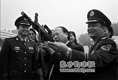 “邊防特勤隊員太厲害了!”昨日(5日),在廣東邊防總隊第七支隊銀湖訓練基地看臺上,30多名來自廣州的政協委員觀看了邊防官兵的警務技能、汽車碾壓、防暴應用射擊等軍事科目的表演。考察之后,政協委員們還在邊防部門領導的指導下體驗了一回“摸槍”的樂趣。