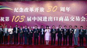 由廣州市工商聯(lián)、市總商會、市外商投資企業(yè)商會、市民營企業(yè)商會共同主辦的“紀(jì)念改革開放30周年暨慶祝第103屆中國進出口商品交易會開幕宴會”,14日在廣州白云國際會議中心舉行。廣州市長張廣寧,市委副書記蘇志佳,市委常委、統(tǒng)戰(zhàn)部長孔少瓊等,以及粵港澳商界代表逾1000人出席。