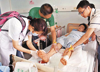 梁國穗說太太很理解他,全力支持他來四川救助災區(qū)傷員,“太太很惦記,每天都會打電話來。”一直埋頭在手術臺上的梁國穗,沒有時間看電視了解災情,甚至連成都鬧余震的事都不知道。“昨天太太來電話讓我注意安全時,才知道余震的事。但我們都說,只要在手術臺上,即使再大的余震,也要堅持到底,絕不能置患者于不顧。”