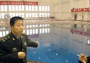 楊利偉介紹失重訓(xùn)練水槽。(圖片來(lái)源:澳門日?qǐng)?bào))