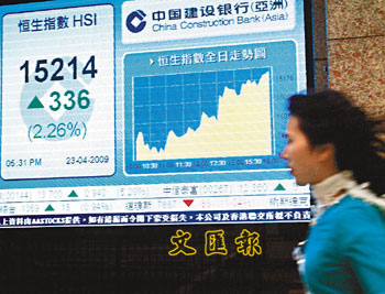 中新網4月24日電 據香港《文匯報》報道,港股經過兩天跌市后,23日受惠內地股市氣氛轉好,加上資金有回流跡象,港匯呈強,香港金管局連續兩天出手干預,令大市顯著反彈。