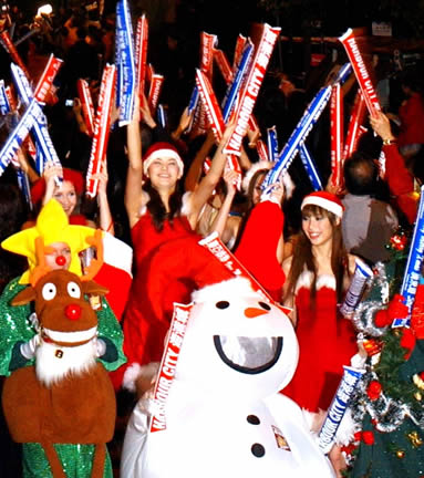 晚上踏入倒數時分,香港市民聚集在海港城對面的廣東道參加迎圣誕倒數:“5、4、3、2、1……圣誕快樂!”在凌晨零時圣誕到臨一刻,在場市民齊聲喊出“圣誕快樂!”聲震云霄,大會發(fā)放燦爛的煙火和灑下密密麻麻的白紙碎,霎時間,香港尖沙咀好像下了冬雪,將派對氣氛推向高潮。