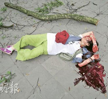 由于言語不通,小文幾經(jīng)艱辛,終在他人協(xié)助下將重傷的胞姐送往都江堰某醫(yī)院,不料市內(nèi)有兩間醫(yī)院也損毀倒塌,且斷水?dāng)嚯姡缍褲M了尸體及傷者。數(shù)小時后,小文與已陷入昏迷的姐姐擠上載滿傷者的救護(hù)車,前往成都四川省人民醫(yī)院求醫(yī)。