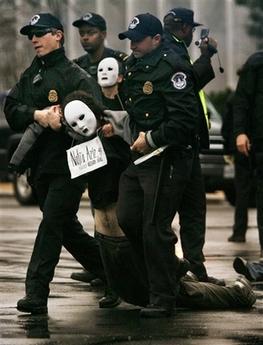 據(jù)香港《文匯報(bào)》報(bào)道,在美國(guó)國(guó)稅局大樓,100多名反戰(zhàn)人士企圖封鎖入口,其中數(shù)人甚至越過(guò)圍攔在門前靜坐。示威者稱,針對(duì)國(guó)稅局是因?yàn)樗鼡芸钯Y助伊戰(zhàn),警方到場(chǎng)后拘捕了32人,并迅速清場(chǎng)。