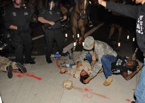15日辯論會場外,警員與反戰示威者發生沖突。