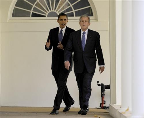 今天的白宮附近戒備森嚴(yán),剛當(dāng)選為下任美國總統(tǒng)的奧巴馬今天下午來到白宮訪問。抵達(dá)白宮后,奧巴馬與現(xiàn)任總統(tǒng)布什相互握手,然后一同步入橢圓型總統(tǒng)辦公室。據(jù)當(dāng)?shù)孛襟w報道說,會見中兩人就一系列問題展開了討論,其中包括金融危機(jī)、伊拉克戰(zhàn)爭等難題。雙方還就白宮權(quán)力移交議題進(jìn)行了商議。在布什與奧巴馬舉行會談的同時,布什夫人勞拉·布什陪伴著未來的第一夫人米歇爾·奧巴馬在白宮走動參觀。