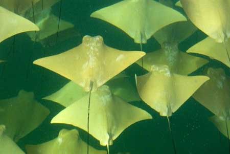 從鰭尖到鰭尖,牛鼻黃貂魚寬2.1米,以成群結隊進行長途遷徙而出名。在大西洋,它們春季末向北遷徙,秋季末則向南遷徙。據估計,這次墨西哥海灣遷徙的牛鼻黃貂魚多達10萬條,從美國佛羅里達順時針前往墨西哥的尤卡坦半島。