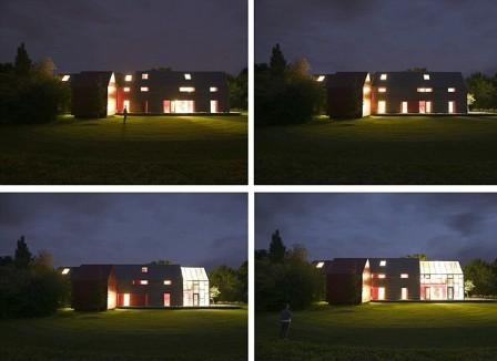 羅素的神奇房屋只要按下按鈕,就可以在短短的6分鐘內(nèi),靠著4個(gè)汽車(chē)電池的動(dòng)力,重達(dá)20噸的屋頂和墻壁還可以在軌道上滑動(dòng)、開(kāi)闔,打破室內(nèi)室外的空間界限,不必搬家就可以隨著四季不同的光線(xiàn)和溫度,讓住家呈現(xiàn)不同的風(fēng)貌。