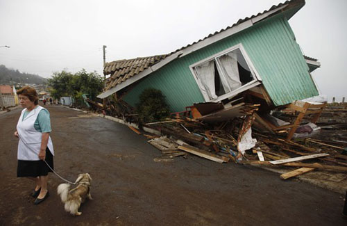 智利南部那些最接近震中的城市受害最為嚴重。官員們說,沿海Maule地區一些城鎮高達80%的建筑被此次地震及后續余震所摧毀。