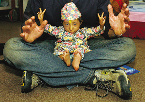 卡根德拉出生時只有600克重。現在,他也只有4.5公斤重,身高也只有約61厘米。他的母親塔納說,他剛生下來時“就像一只剛從蛋殼里孵出來的小雞。”卡根德拉的父親魯普說,兒子和家人吃一樣的食物,但就是長不大,“直到8歲時才能獨立行走”。去年,家人發現卡根德拉停止長個兒。醫生至今無法對卡根德拉無法長大的原因給出解釋,但猜測這可能與腦垂體機能失常有關。